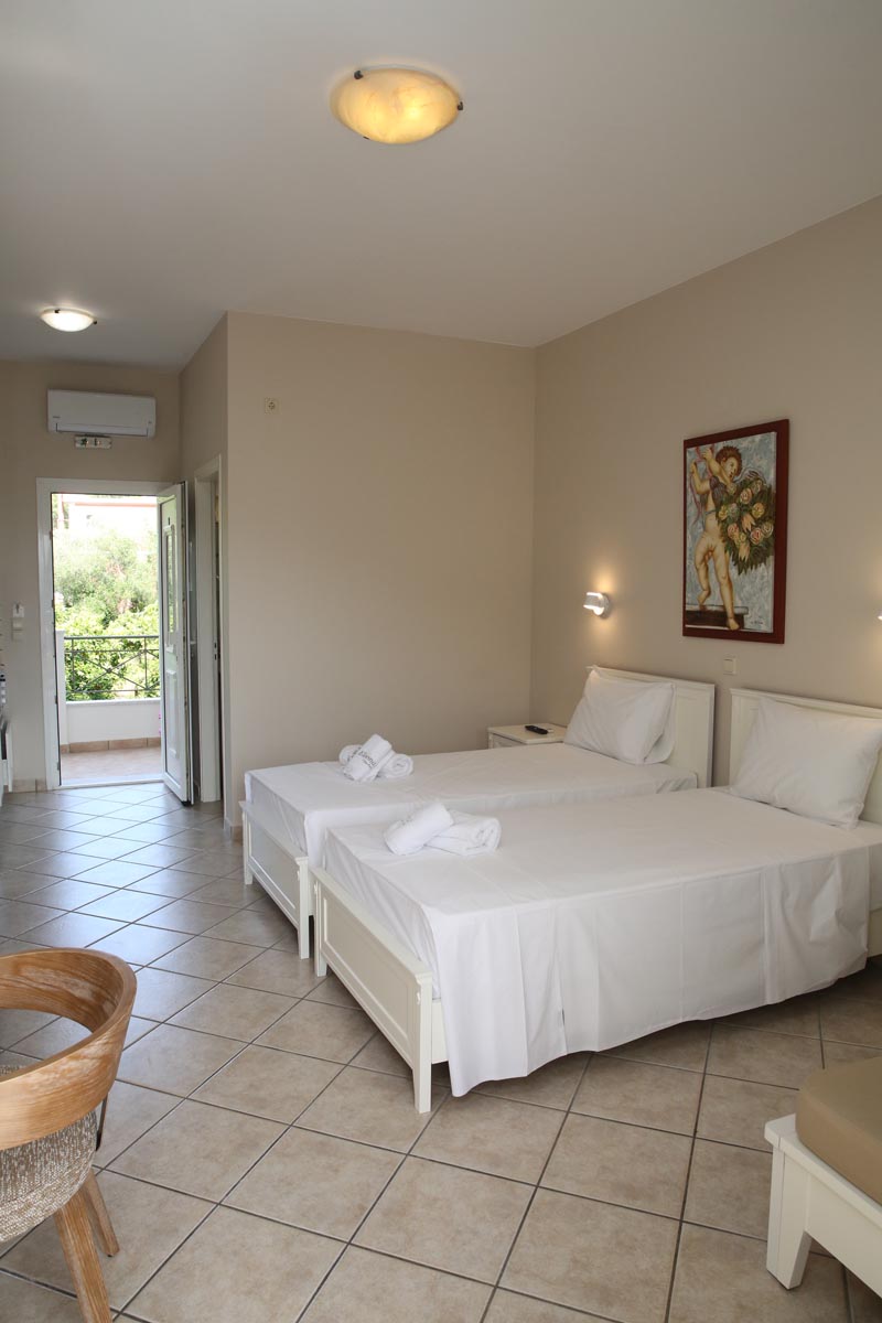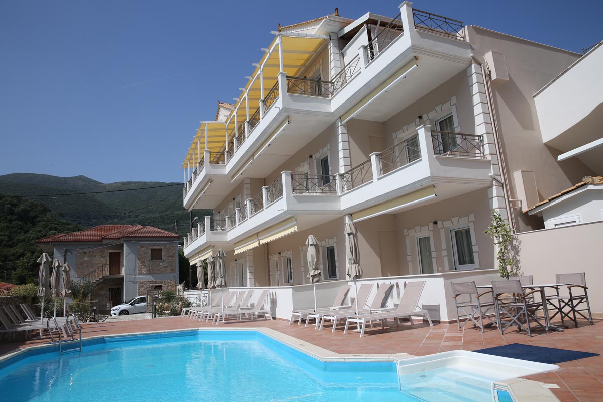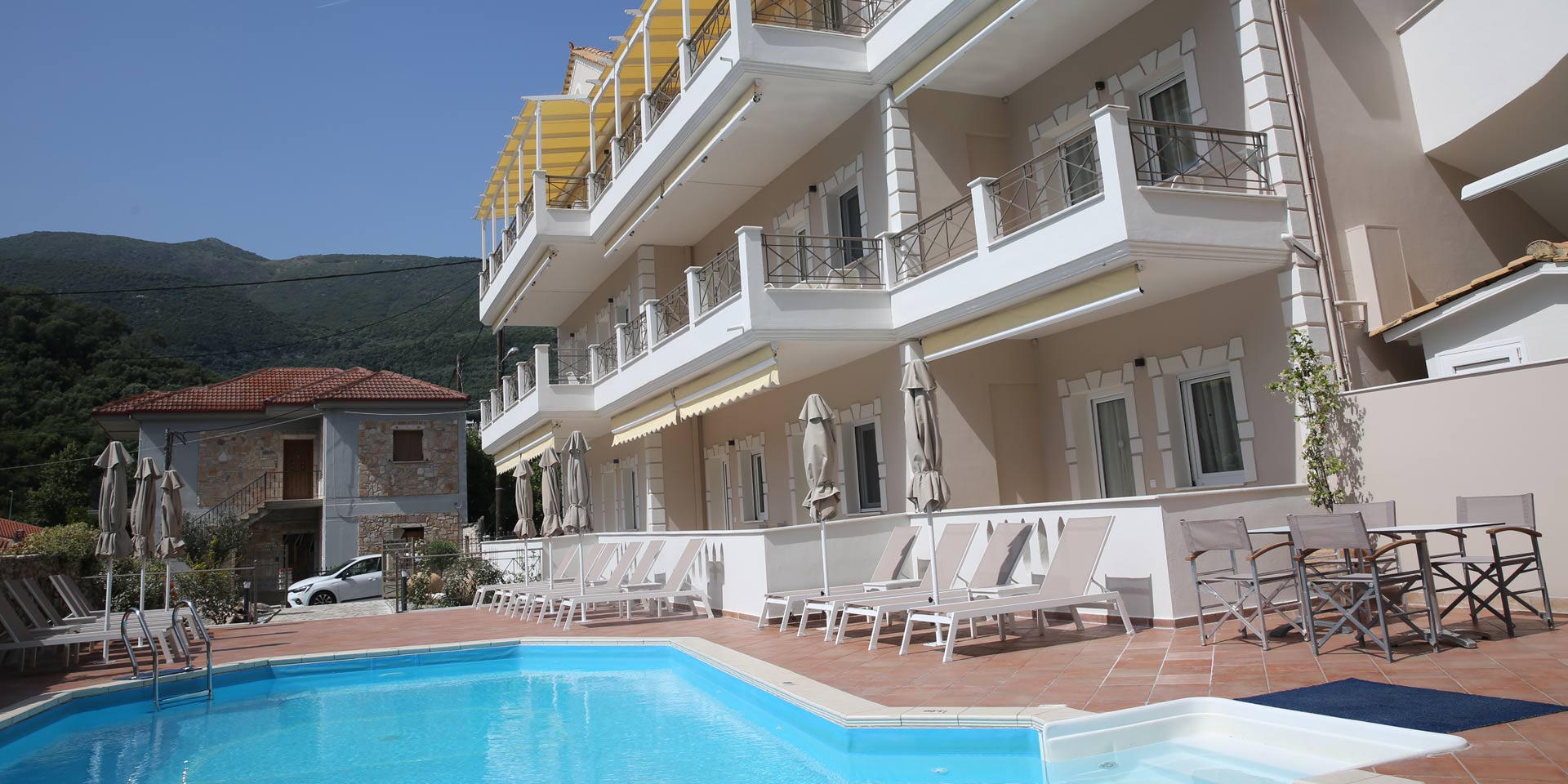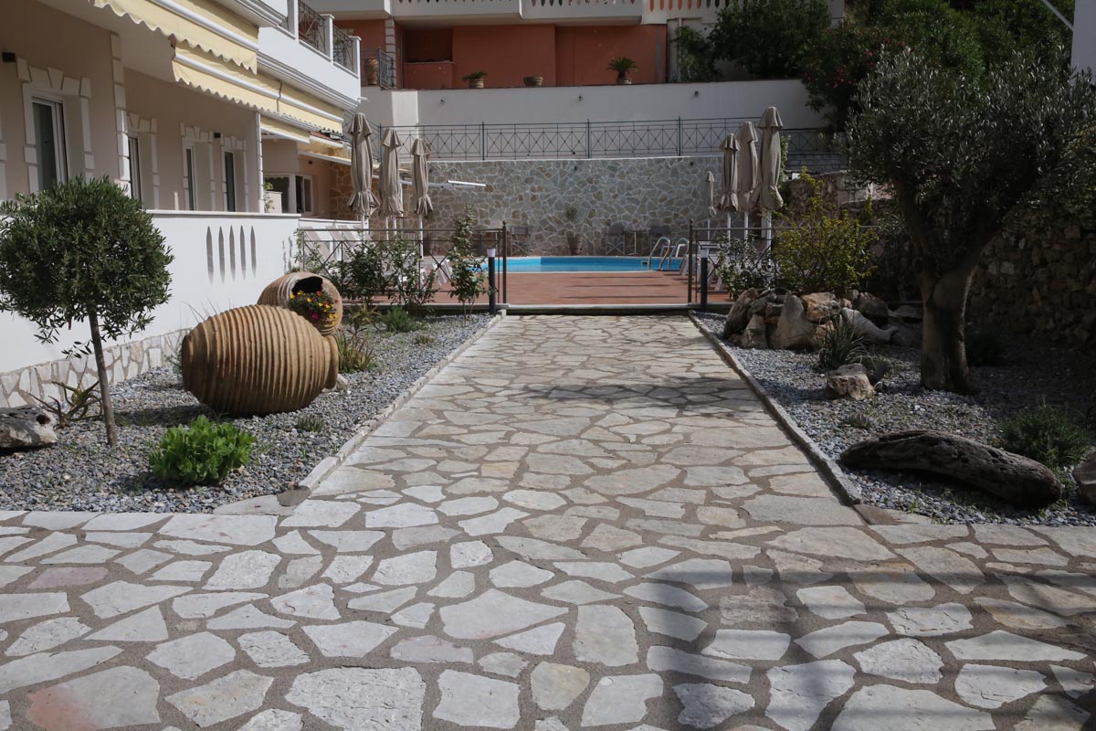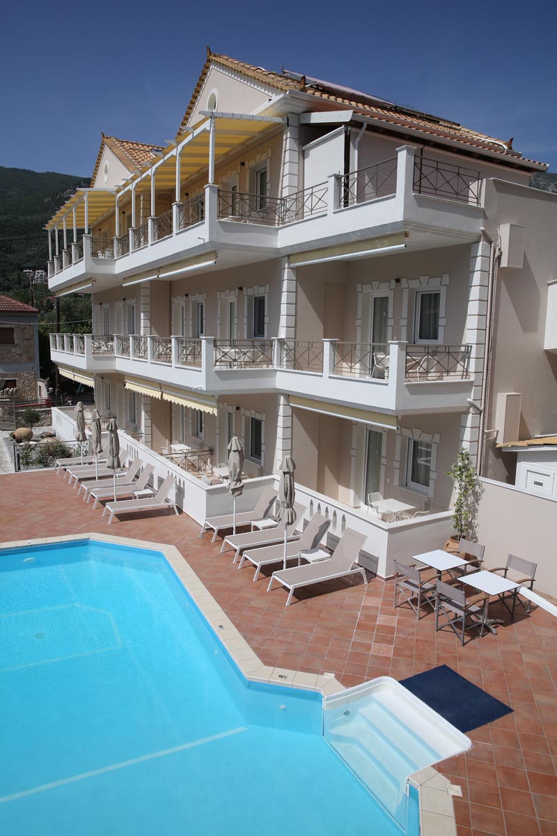 View the photo gallery with interior and exterior photos of Eleonas Villas. Our rooms and the pool area.
