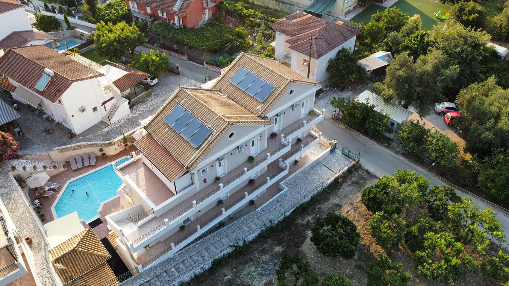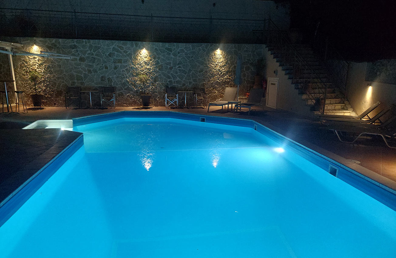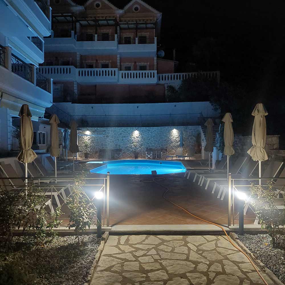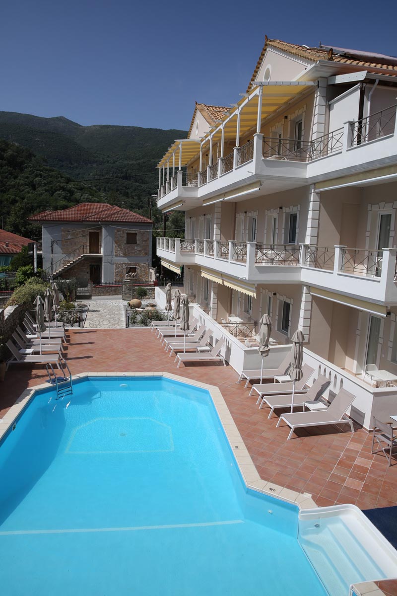 View the photo gallery with interior and exterior photos of Eleonas Villas. Our rooms and the pool area.