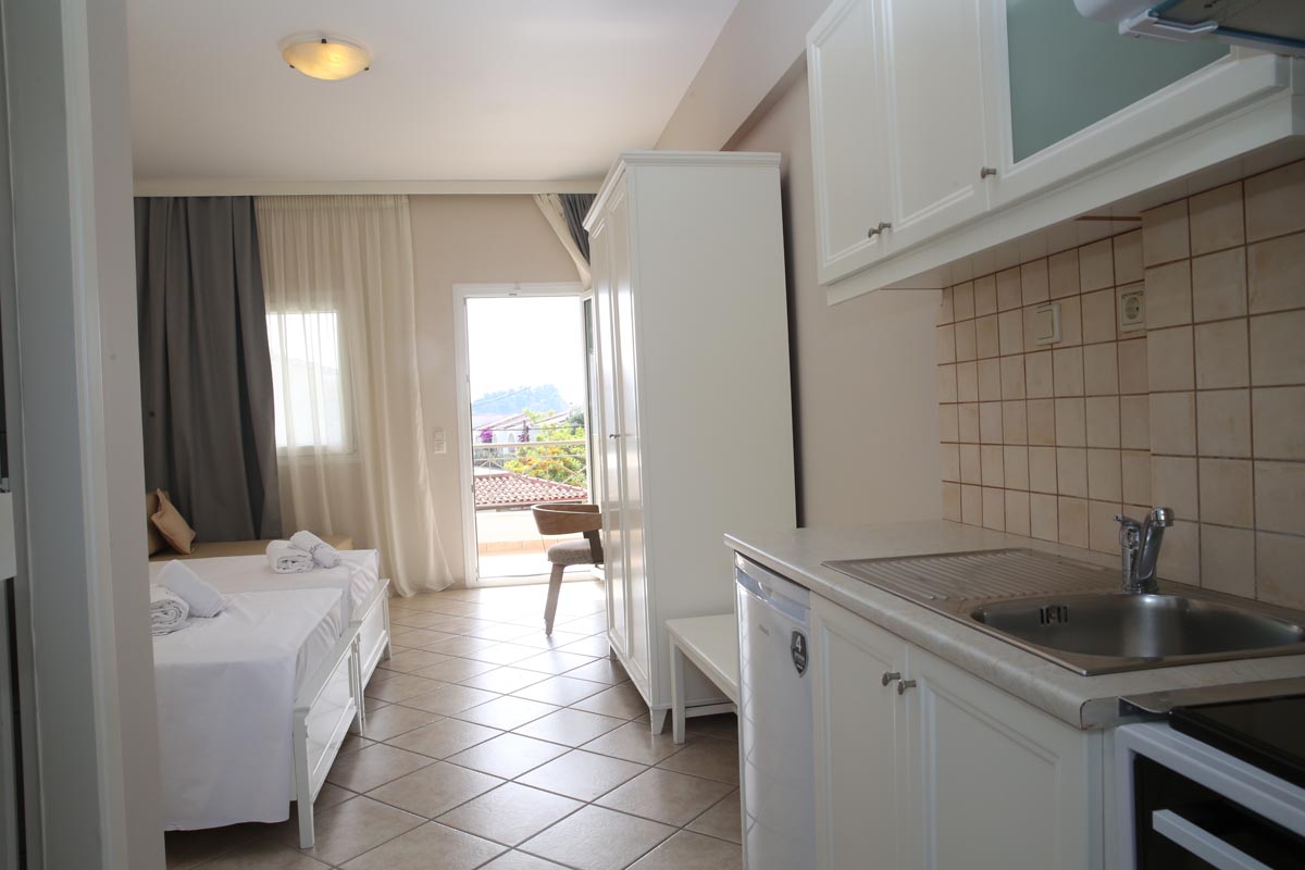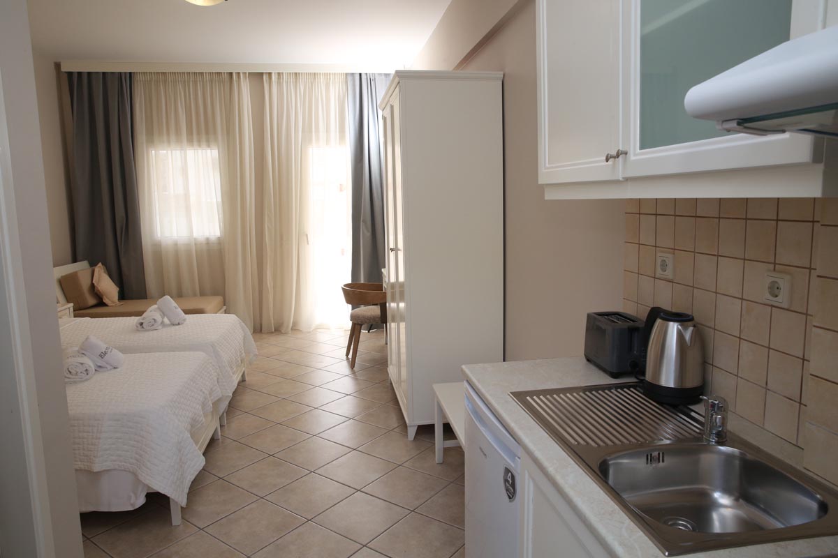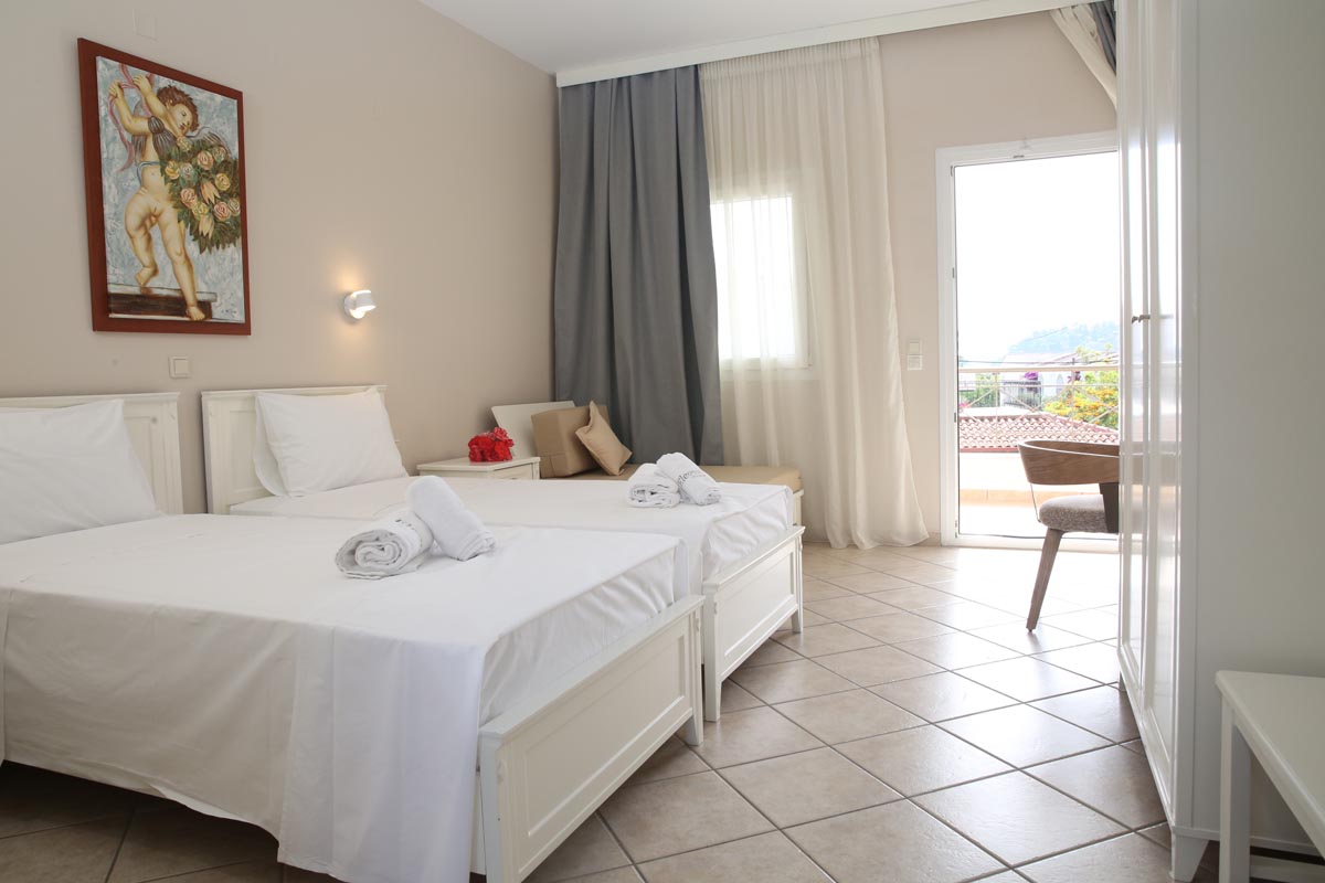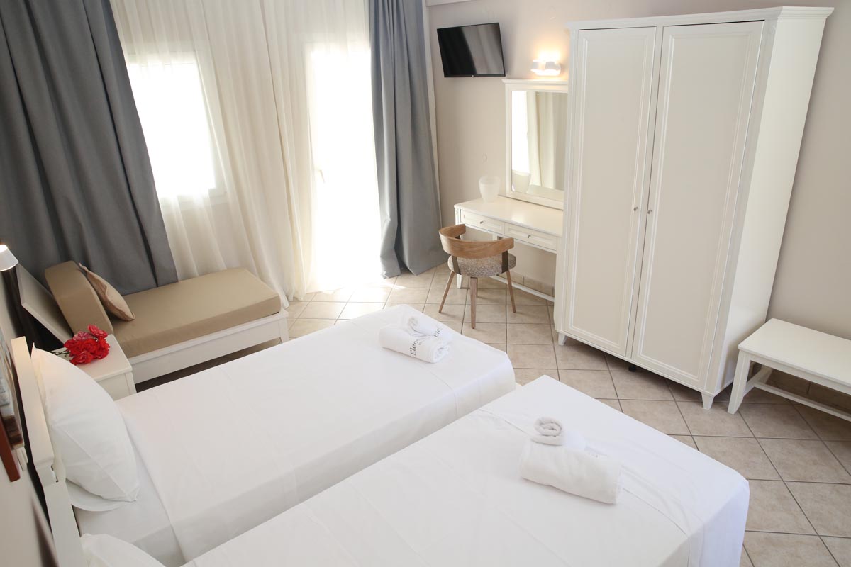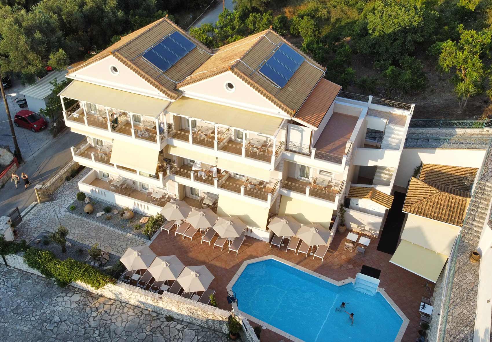 View the photo gallery with interior and exterior photos of Eleonas Villas. Our rooms and the pool area.